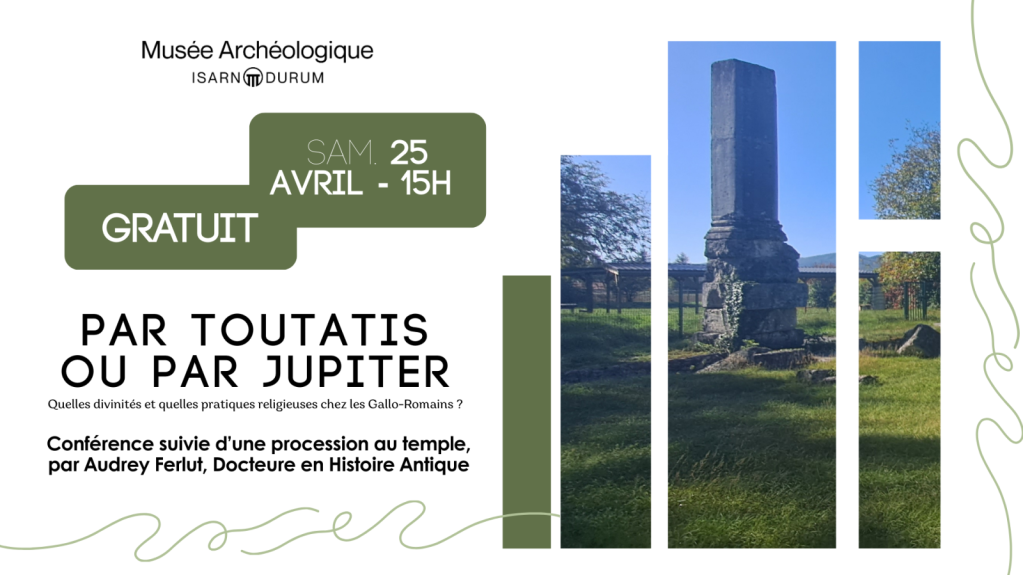 Le musée archéologique d’Izernore est ravi d’accueillir Audrey Ferlut, docteure en Histoire antique, professeure agrégée et enseignante-chercheuse associée à HiSoMA, pour une conférence gratuite consacrée à la religion en Gaule romaine.