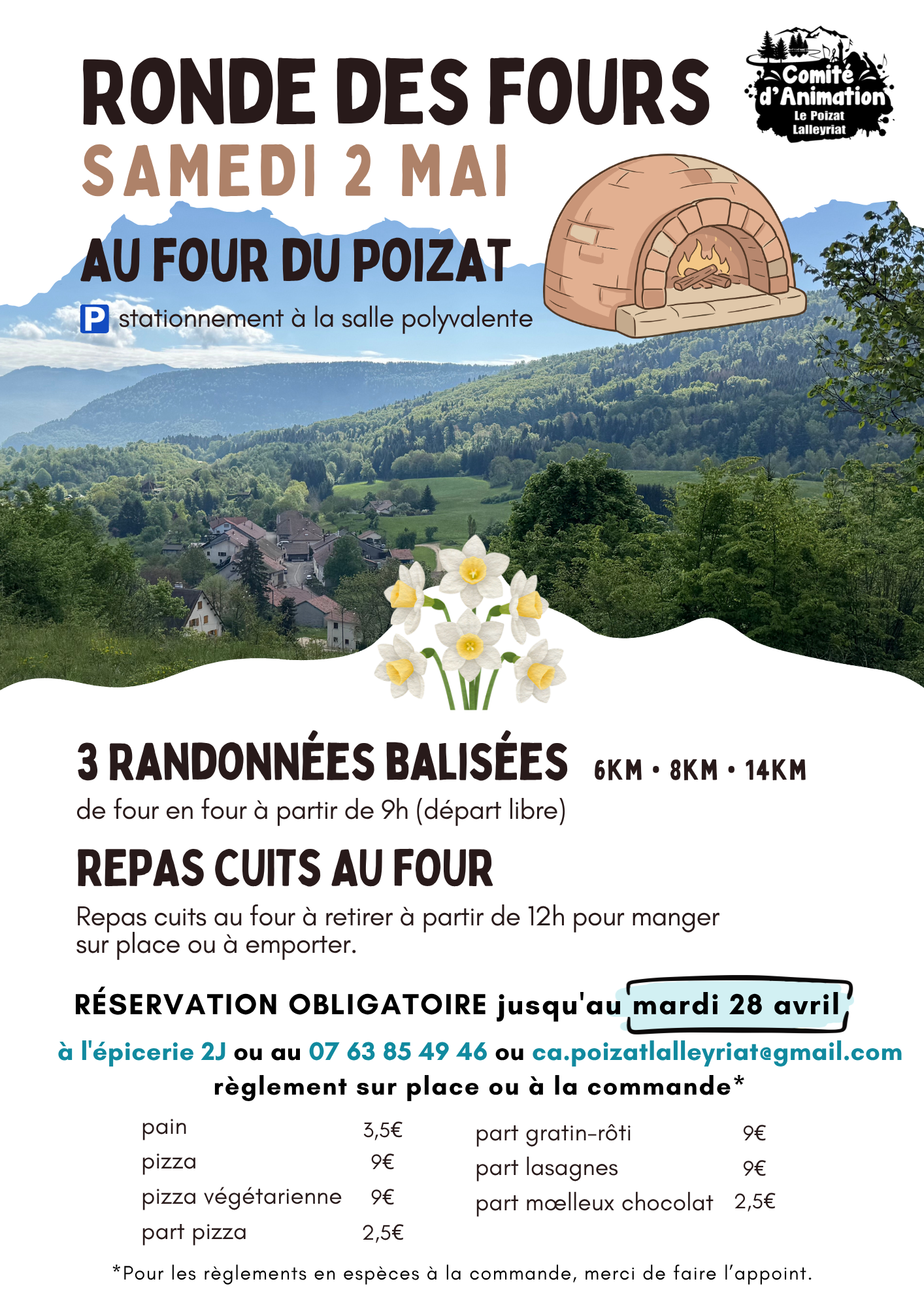 2€ pour la randonnée, offerts pour tout achat de repas.