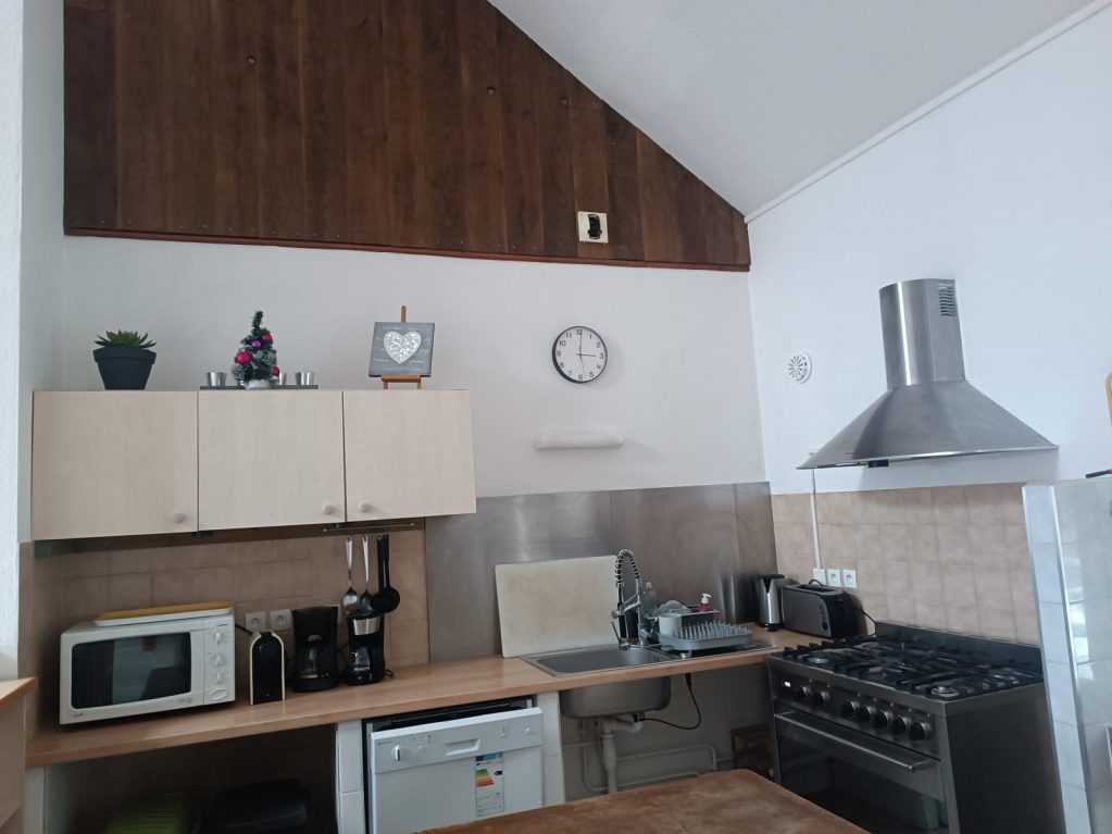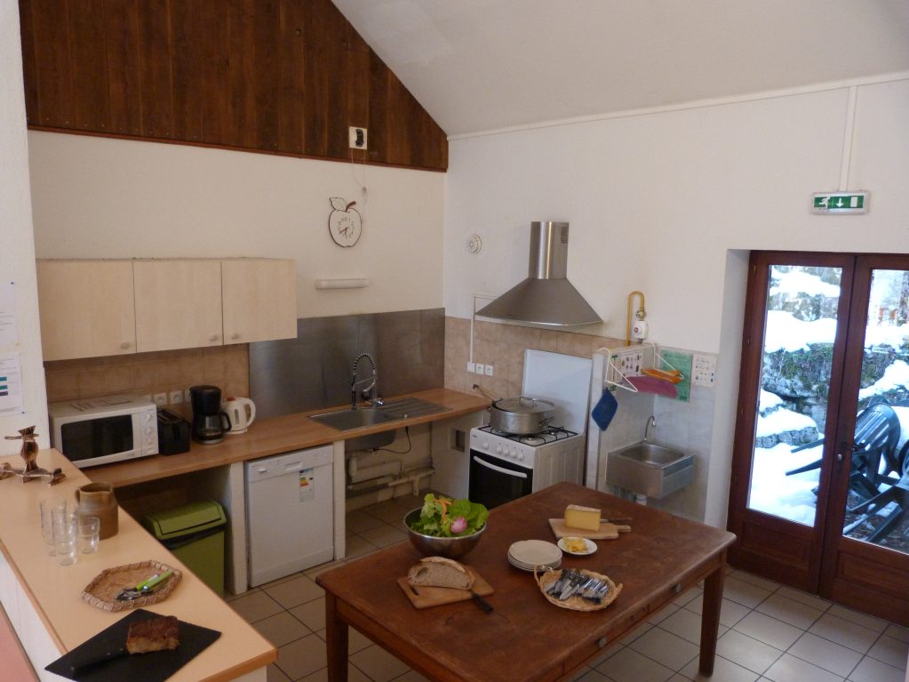 Au 1er étage : 1 chambre pour 6 personnes, 1 chambre pour 4 personnes, 1 chambre pour 2 personnes, 2 salles de bain avec douche, un WC et une grande salle commune (salle à manger et cuisine) avec cuisine toute équipée (accès personnes à mobilité réduite).
