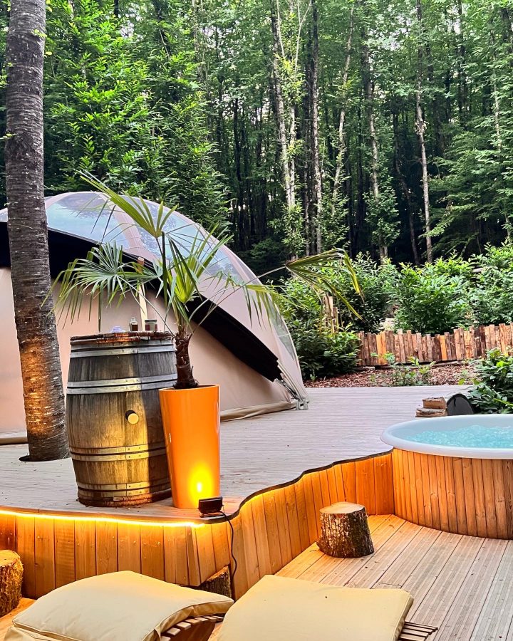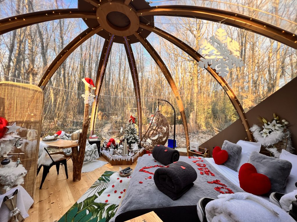 Un dôme tropical unique peut accueillir jusqu’à 4 personnes dans un cadre privatisé. Cette option offre une atmosphère encore plus mémorable, que ce soit pour un couple en quête de romance ou une famille souhaitant partager des instants inoubliables. Ce cadre intime garantit de savourer chaque moment, tout en ayant la liberté de profiter des équipements à votre rythme.