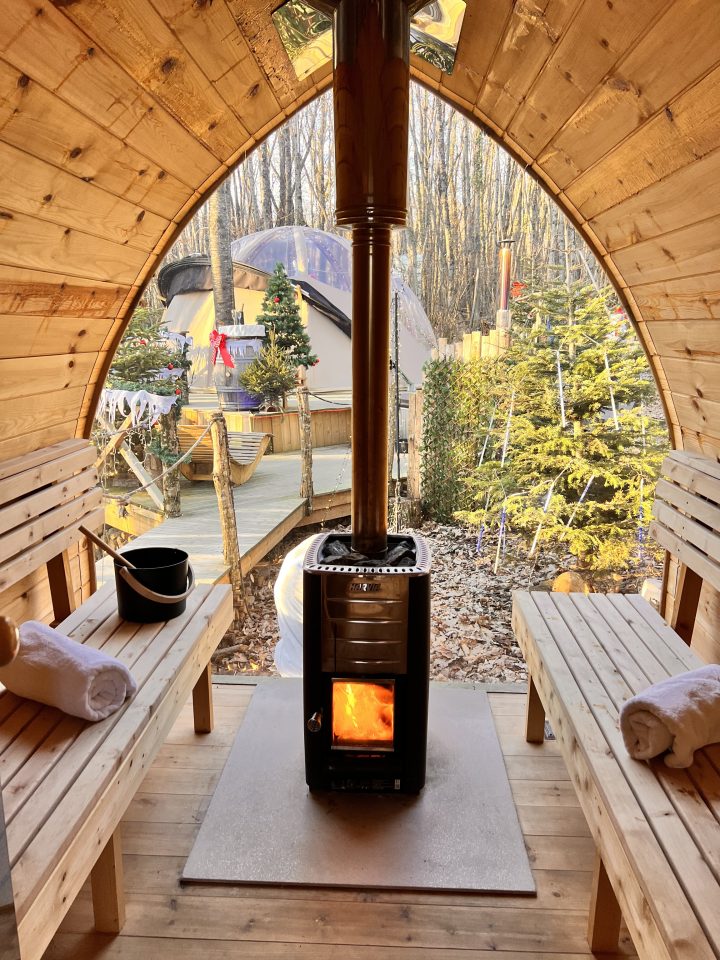 Le dôme est également équipé d’un fauteuil massant exclusif, de pierres chaudes, d’huile de massage et d'un poêle à bois pour ajouter une touche de chaleur à votre séjour.