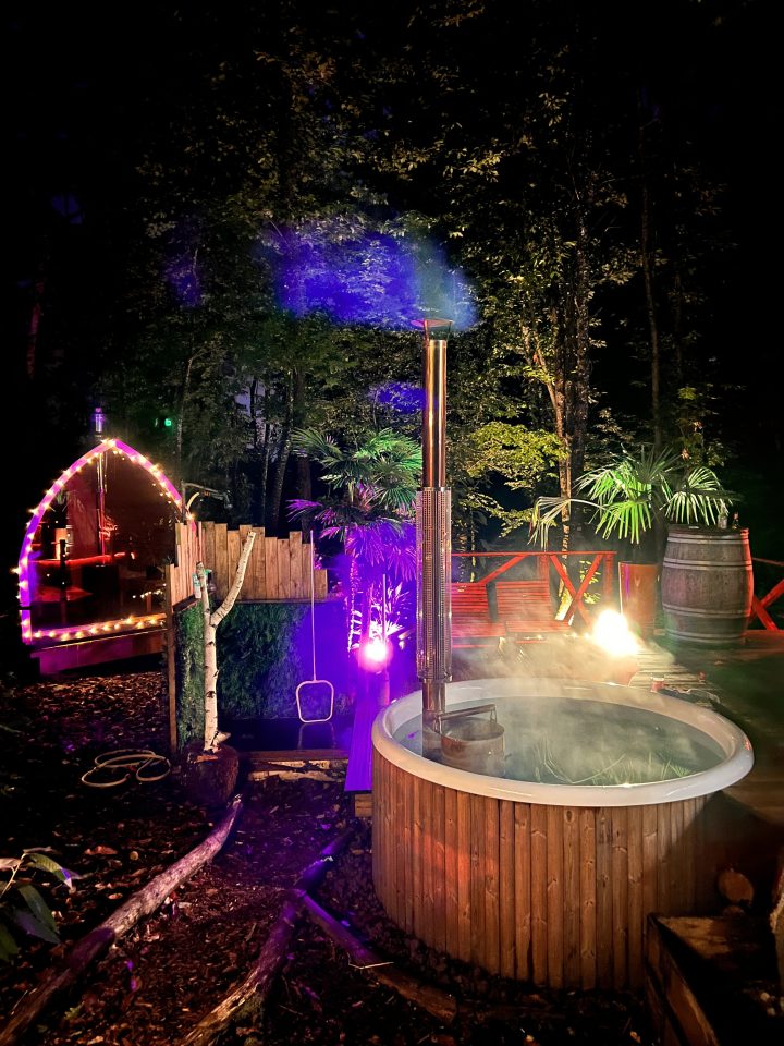 Découvrez un bien-être total avec notre nouvelle formule : sauna, bain nordique, fauteuil massant, feu de camp et bien plus encore, le tout dans un cadre intime et privatisé. Votre dôme géodésique moderne vous invite à une immersion totale dans la nature, avec sa transparence singulière permettant de contempler les étoiles et d'écouter le vent dans les arbres. Vous vous connecterez intimement à l'environnement naturel alentour.