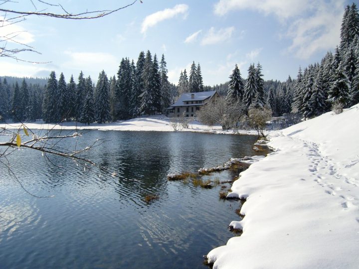 En hiver luge et raquettes et quand le lac est gelé, patin à glace sur le lac.za