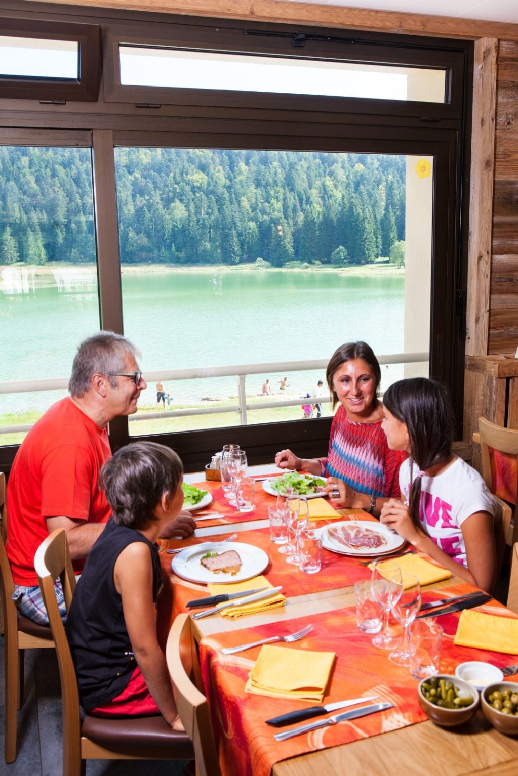 Profitez de ce cadre exceptionnel de lac et de montagne pour déguster les grillades et le saucisson au vin braisé cuits au feu de bois dans la grande cheminée au milieu de la salle ainsi que le filet de truite rose sauce échalotte, les croustades d'escargots, le tournedos aux morilles , sans oublier la fondue savoyarde en hiver ...