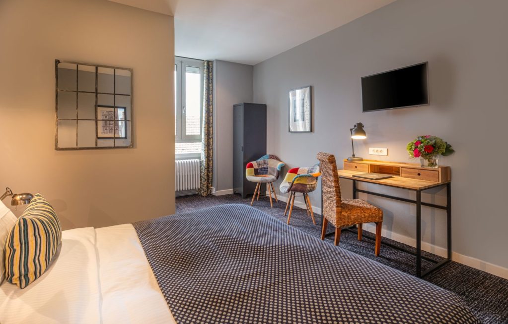 Le Nouvel Hôtel classé 3 étoiles est un écrin de raffinement au centre-ville d'Oyonnax invitant à vivre une expérience inattendue en un lieu où les lumières, les couleurs, les matières créent une atmosphère intimiste.
