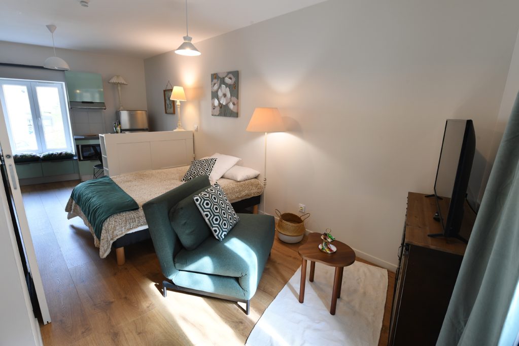 Le stationnement se fait facilement Il y a des places à quelques dizaines de mètres en face de l'Impasse avant l’arrivée à la maison. La ville est calme et reposante. Les appartements sont tout équipés comme à la maison, cuisine : lave vaisselle, four, plaque induction, grand frigo, TV, grand lit pour 2 personnes, salle d'eau avec grande douche.