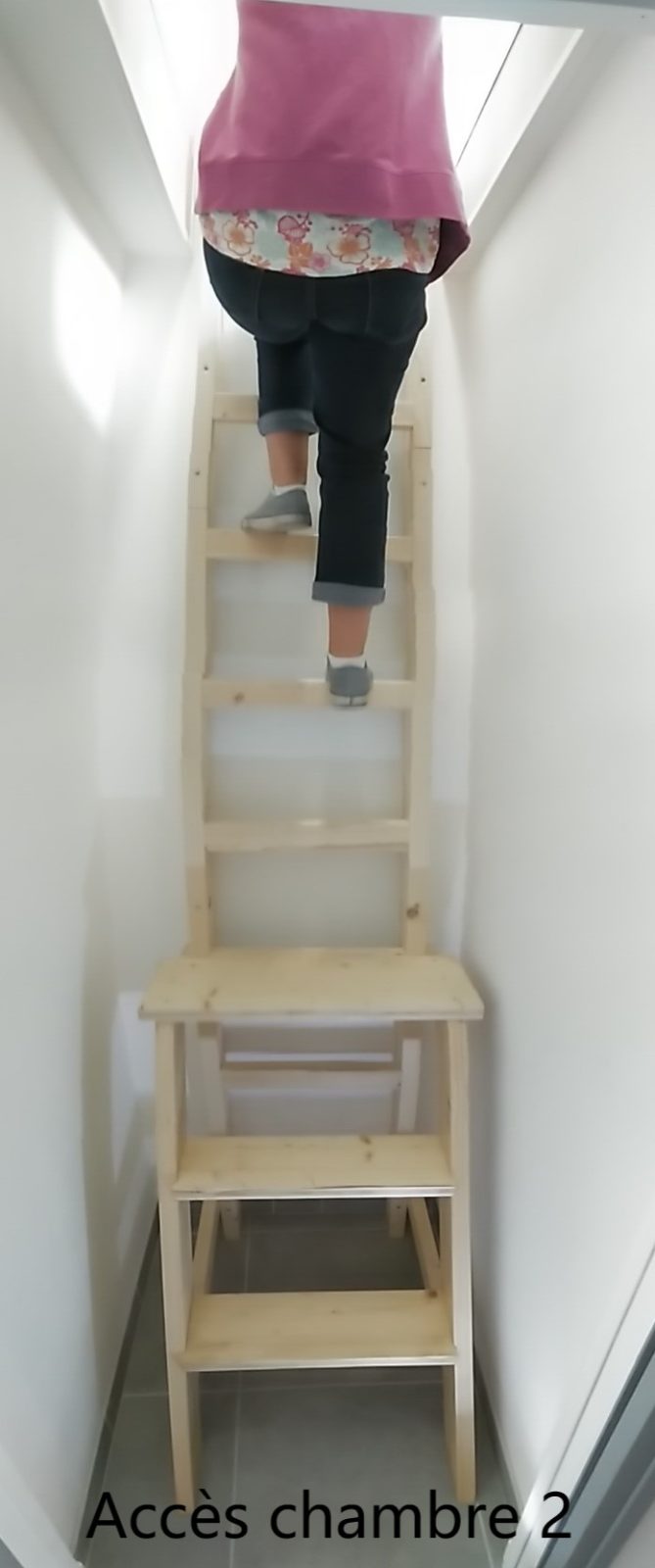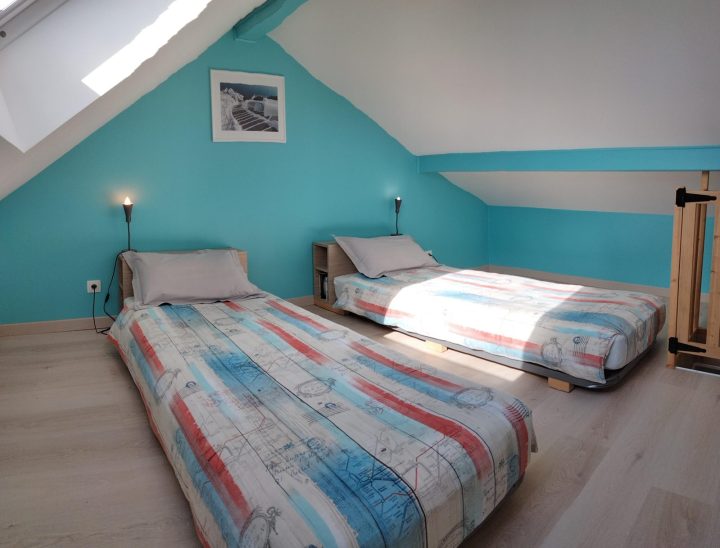 L'appartement est composé d'une cuisine équipée, d'une salle d'eau (douche, lavabo, wc) et de deux chambres (une avec un lit de 140 x 190 et l'autre avec deux lits 80 x 200). Attention, l'accès à la deuxième chambre se fait par une échelle.