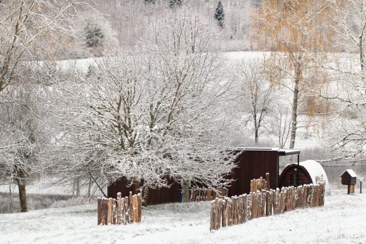 Les écolodges Bleu Minuit, situés sur l'eau ou sur la rive de l'étang, à 1123 mètres d'altitude, offrent une expérience unique au cœur d'un environnement naturel préservé, dépourvu de toute pollution lumineuse. Admirez les étoiles depuis votre lit !