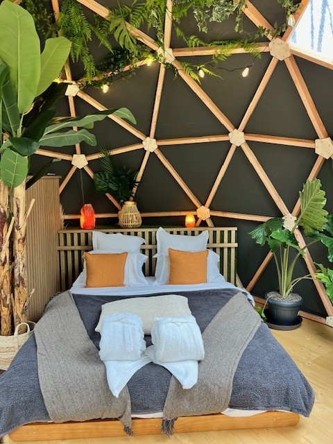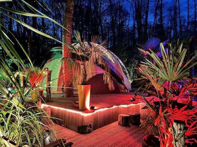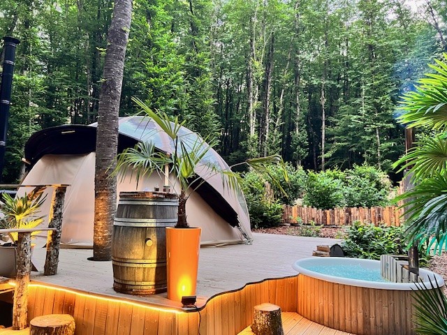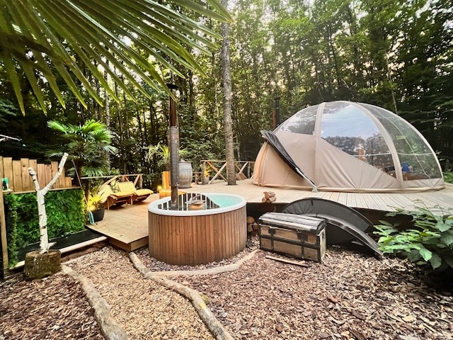 Un dôme tropical unique peut accueillir jusqu’à 4 personnes dans un cadre privatisé. Cette option offre une atmosphère encore plus mémorable, que ce soit pour un couple en quête de romance ou une famille souhaitant partager des instants inoubliables. Ce cadre intime garantit de savourer chaque moment, tout en ayant la liberté de profiter des équipements à votre rythme.