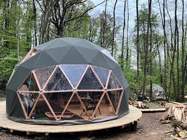 Découvrez un bien-être total avec notre nouvelle formule : sauna, bain nordique, fauteuil massant, feu de camp et bien plus encore, le tout dans un cadre intime et privatisé. Votre dôme géodésique moderne vous invite à une immersion totale dans la nature, avec sa transparence singulière permettant de contempler les étoiles et d'écouter le vent dans les arbres. Vous vous connecterez intimement à l'environnement naturel alentour.