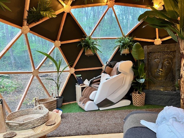 Le dôme est également équipé d’un fauteuil massant exclusif, de pierres chaudes, d’huile de massage et d'un poêle à bois pour ajouter une touche de chaleur à votre séjour.