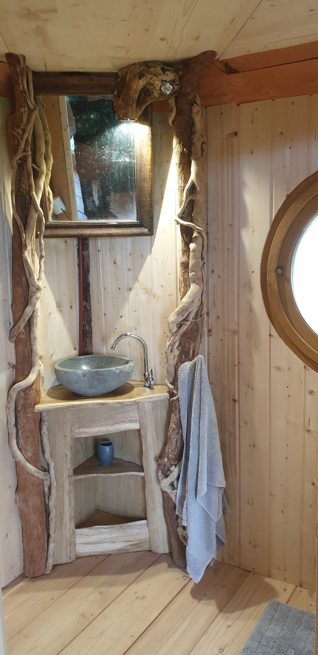 Cabane tout confort entièrement autonome, conçue avec des matériaux sains, durables et de provenance locale.
