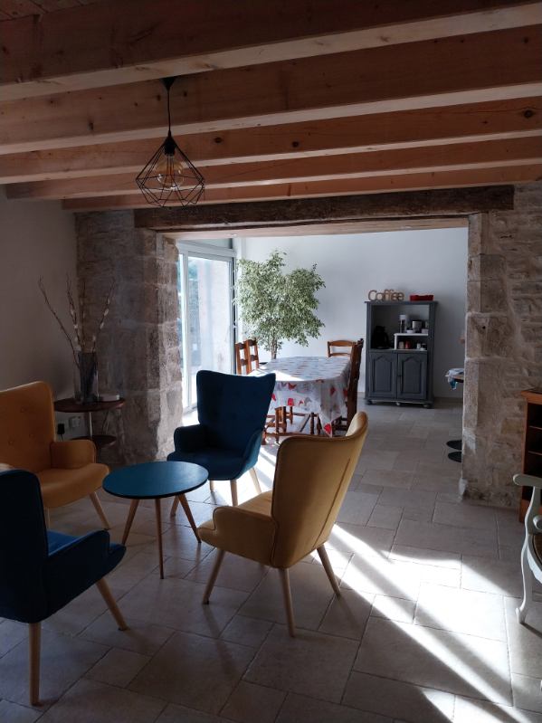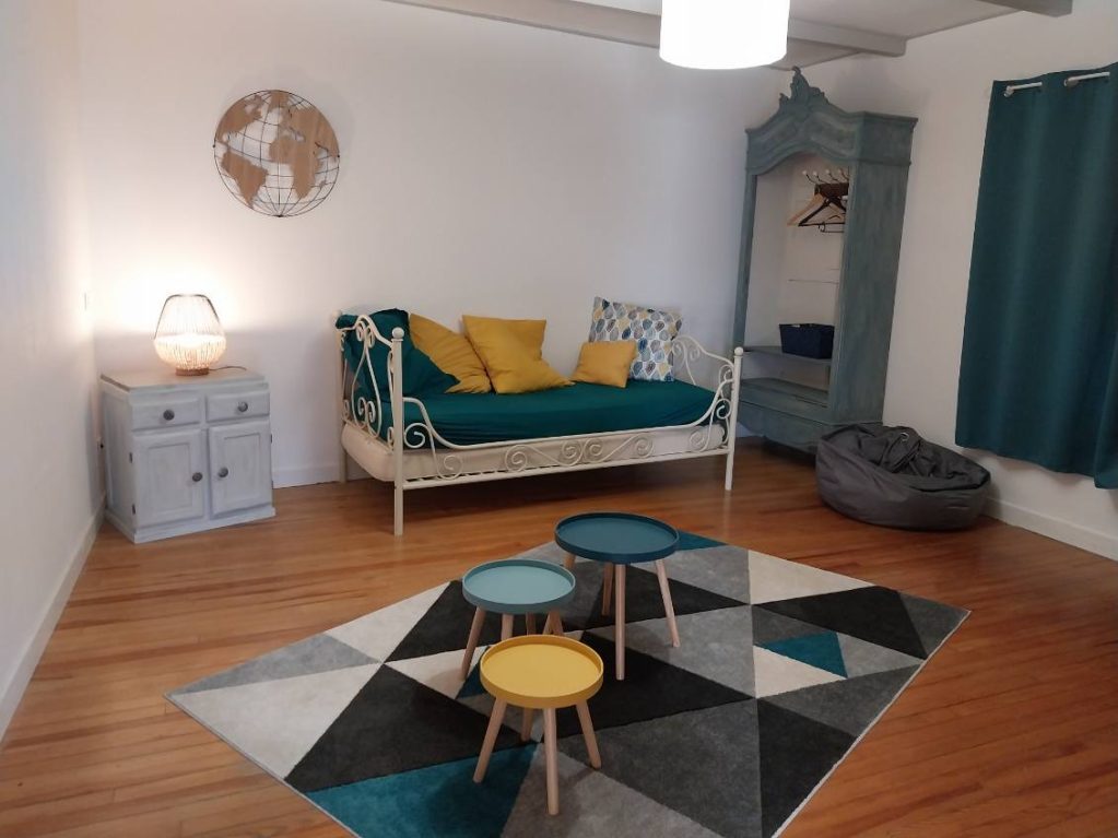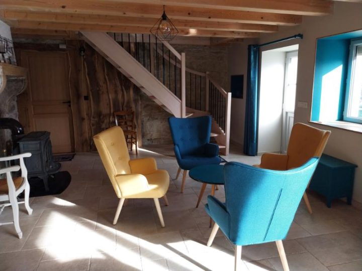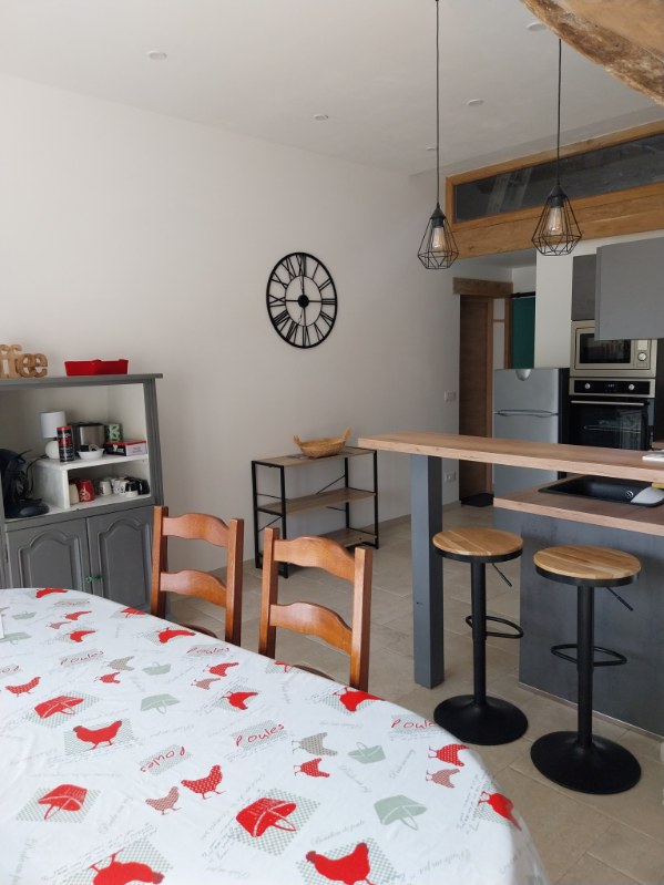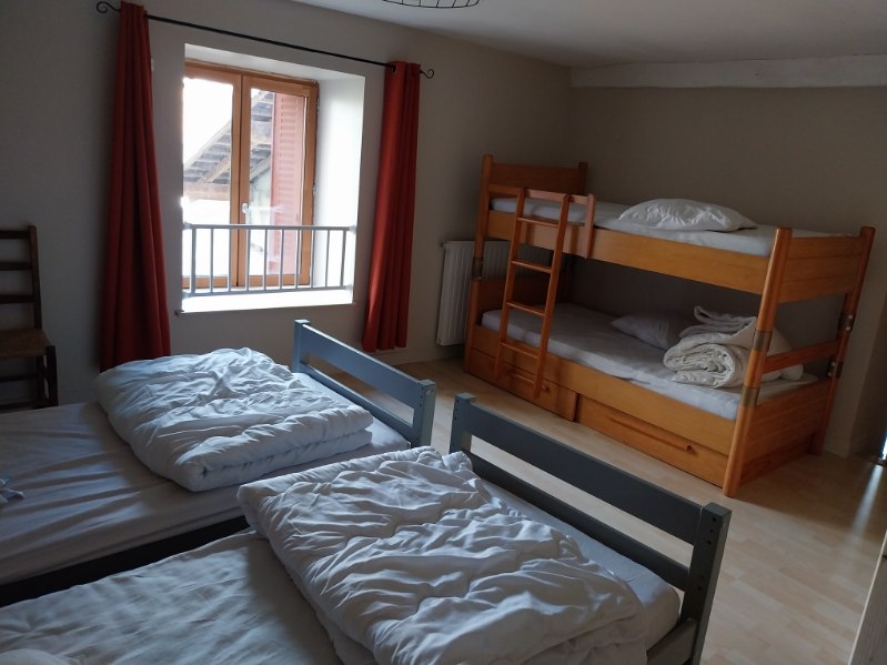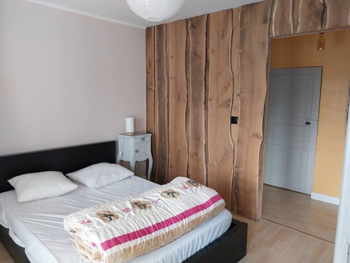 Logement de 120m², lumineux, abri attenant, terrasse, parking 2 véhicules, cour non fermée, cuisine équipée (cafetière à dosette ou à filtre, grille-pain, bouilloire, lave-vaisselle... Coin cosy auprès du feu (poêle à bois), salon avec télé et canapé 2 chambres (1 chambre avec 1 lit double et une chambre avec 4 lits simples dont 1 superposé), 2 WC, 2 salles de bain. Linge de lit, serviettes de toilette fournies.