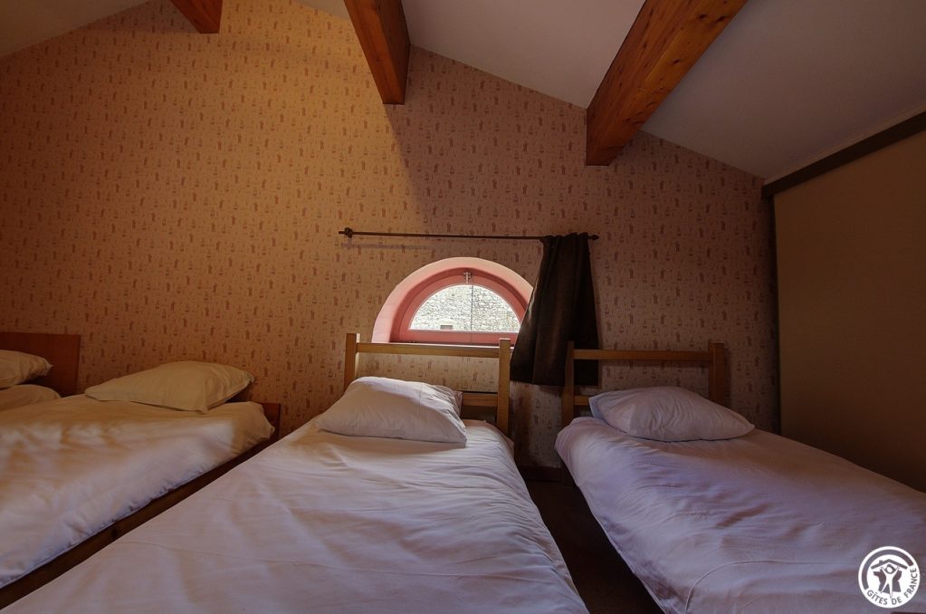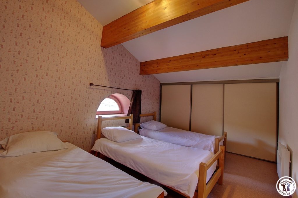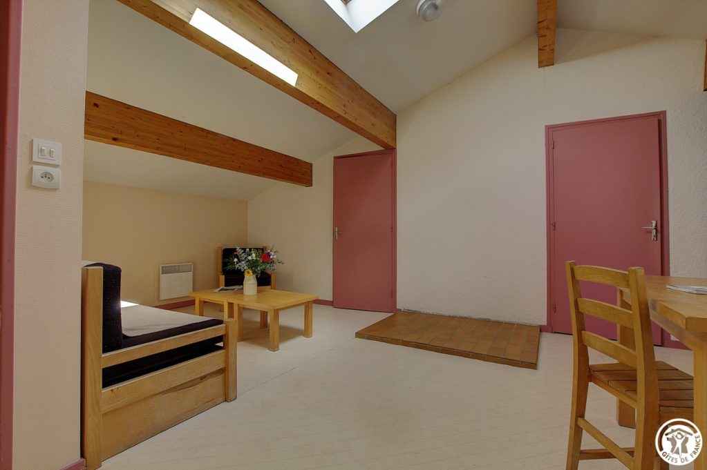 Séjour coin cuisine, 2 chambres (1 lit 2 pers, 4 lits 1 pers.), salle de bains, chauffage électrique. Plan d'eau, pêche, sentier découverte, circuits balisés (VTT, rando, cheval). Patrimoine. Restaurant au village.