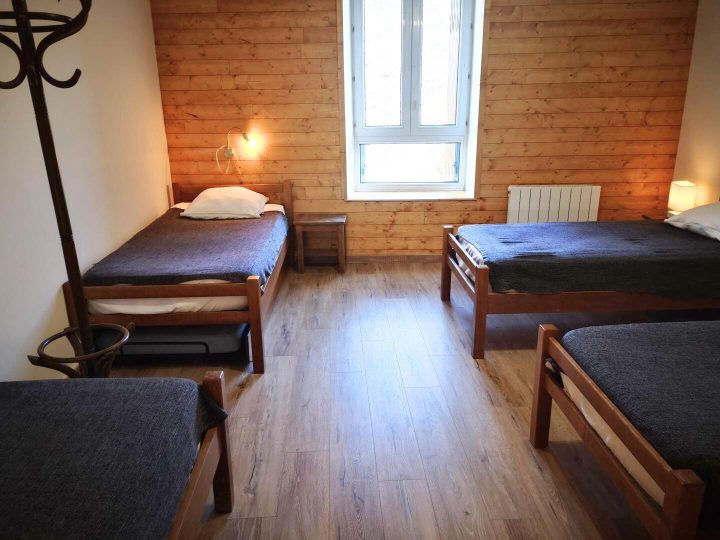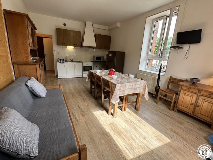 Cette location de vacances (rénovée sols et murs début 2024) se compose d'un vaste séjour avec un coin cuisine tout équipé et un canapé pour des moments de détente après vos escapades. Il dispose de deux chambres : l'une avec quatre lits simples (90x190), parfaite pour les familles ou les groupes d'amis, et l'autre avec un lit double (140x190). Une salle de bain et des toilettes séparées complètent cet espace, conçu pour votre confort.