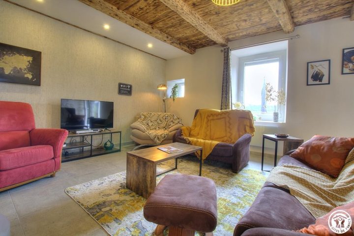 A vous de choisir entre lac ou randonnées pédestres. Et pourquoi pas swinguer ? Au cœur de Samognat, à 8 km d'Oyonnax, venez découvrir une région riche en montagnes, forêts et verdure. Rien de mieux que d'explorer la région à pied. Vous pouvez commencer par un sentier en forêt qui longe la rivière. Le reste n'en sera que surprise. Laissez vous surprendre par les sauts et les marmites de Charmine, site classé. Vous souhaitez tester votre swing ou tout simplement vous initier au golf ? Un parcours vous attend à 5 minutes en voiture. L'été, vous pouvez vous rafraichir au Lac en contrebas du village. Et pourquoi pas taquiner le poisson pour les mordus de pêche. Et en hiver ? Des activités également pour tous : une découverte du Plateau du Retord en raquettes. Et pourquoi pas une balade en chiens de traineau pour s'imprégner de cette nature vraie. Et si la journée se terminait en douceur tout en profitant de la terrasse du gîte, orientée Sud Ouest avec vue sur le lac ? Un petit jardin prolongera ce moment douceur. Mais avez-vous pris le temps de visiter le gîte. Un appartement douillet, rénové avec le charme, le cachet et ses touches d'ancien : pierres apparentes, poutres, commode "revisitée", ... Que diriez-vous de vous lover autour du poêle à granules, dans un des nombreux fauteuils ou canapés. Un moment en toute simplicité. Au rez-de-chaussée : cuisine équipée avec espace repas, salon avec accès sur la terrasse privée et son petit jardin. Salle d'eau avec WC. Au 1er : trois chambres - deux chambres avec chacune un lit double et une chambre avec deux lits simples. Au gîte du Banchets, on voyage léger. Les lits sont fait à l'arrivée, le linge de toilette fourni et les charges sont comprises (Chauffage électrique et bois). Mitoyenneté des deux côtés et notamment aux propriétaires. Parking devant le gîte.