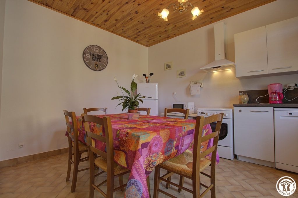 Notre gîte La vigne, classé 2 étoiles par Gîte de France est constitué d’une cuisine toute équipée, d’une salle à manger et d’un grand salon avec sa cheminée d’agrément. Une salle d’eau avec baignoire. Une buanderie. A l’étage une chambre spacieuse avec un lit 160*200, deux grandes chambres comprenant chacune deux lits de 90*200 que nous pouvons rapprocher ou non en fonction de vos besoins. Et une petite chambre enfant avec lit gigogne coin jeux. Pour votre confort les lits seront faits à votre arrivée. Terrasse plein sud équipée.