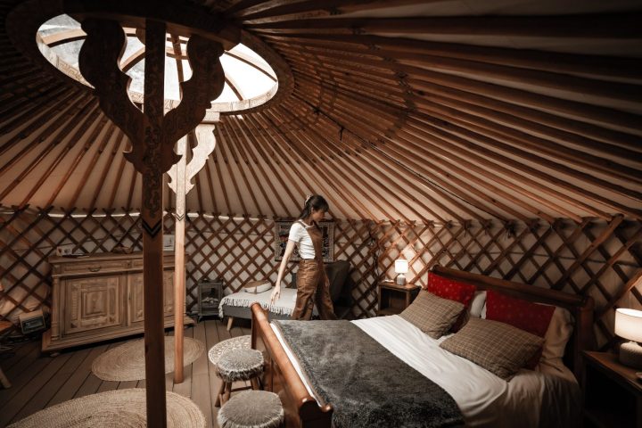 Venez découvrir les plaisirs "cosy" d'un séjour en Yourte traditionnelle Mongole et tombez sous la charme de ces habitats traditionnels tout confort et de son aménagement glamping "cocon". Idéal pour un séjour en couple ou en famille.