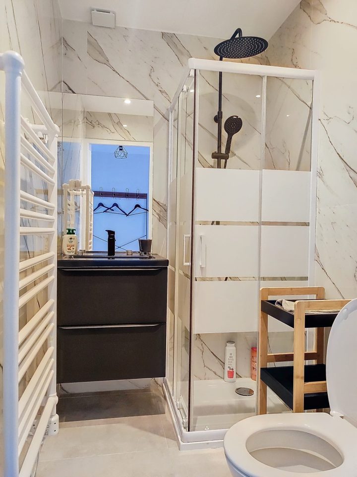 L'Atelier d'Anatole Classé Meublé de tourisme ⭐⭐⭐, est un appartement charmant et moderne. Il comprend une salle de bain élégante avec douche vitrée, une cuisine ouverte entièrement équipée, et un salon lumineux décoré avec goût, doté d'un coin repas. L'extérieur présente une petite cour verdoyante. De plus, l'appartement dispose d’un garage privé sécurisé, en plein centre. Idéal pour des vacances confortables ou des séjours d'affaires relaxants.