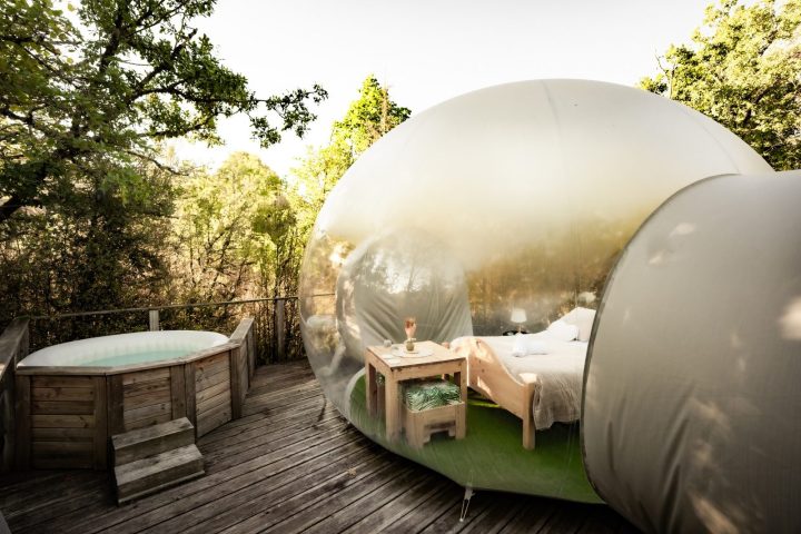 Immergées dans la végétation, nos bulles transparentes vous feront passer une nuit inoubliable à la belle étoile dans le confort intégrale d'une chambre d'hôtel.