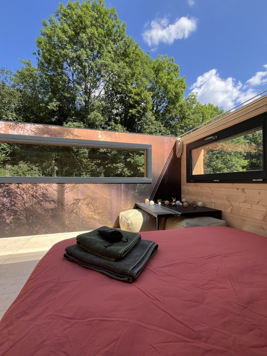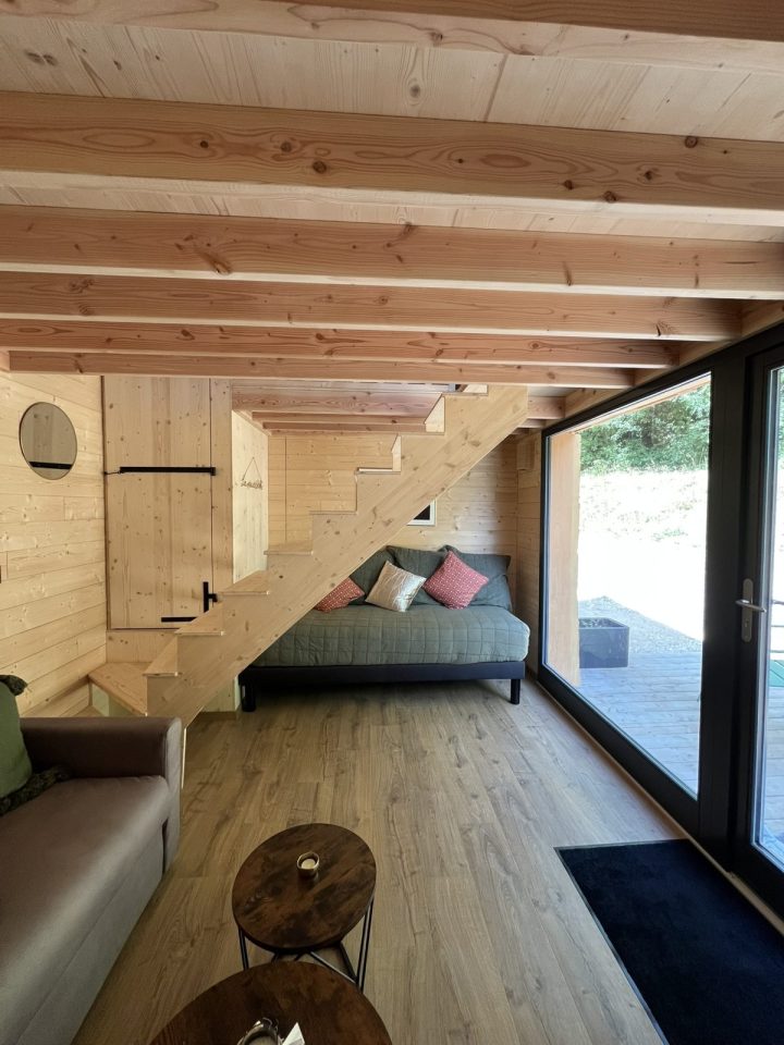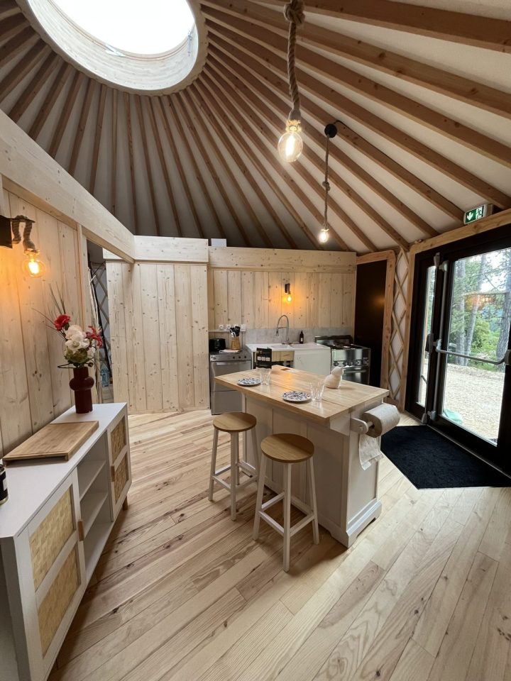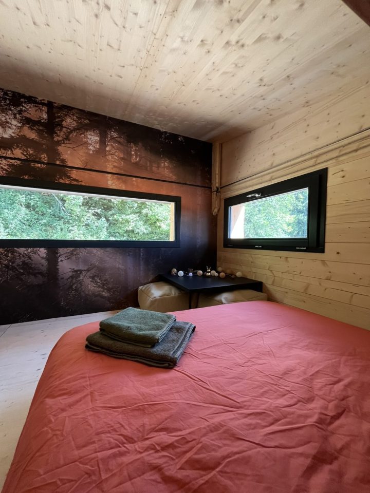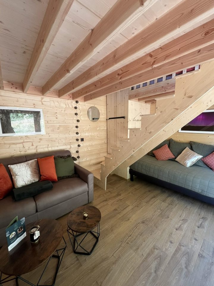 - des locations insolites avec quatre structures bois de qualité toutes équipées (dont une accessible à toutes et tous et notamment aux personnes en situation de handicap) que l'on soit en solo, en amoureux, en (grande) famille voire en tribu de 9 personnes ou plus !
