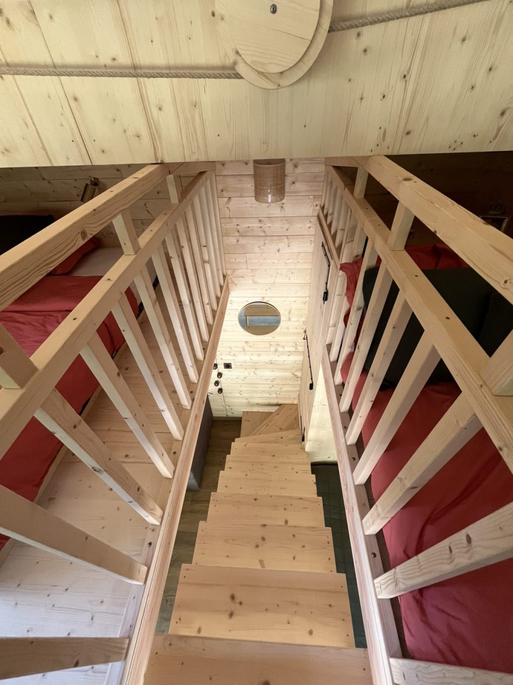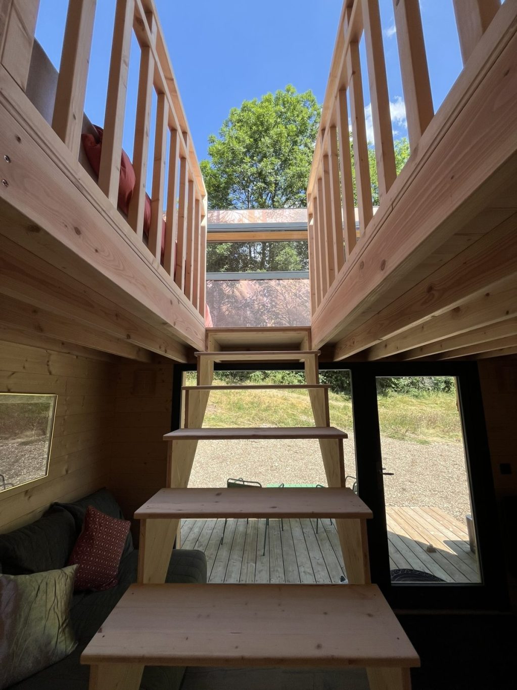 C'est confortable pour 1 à 6 personnes : Un lit double et un lit simple dans la mezzanine du haut (qui tutoie les éléments et notamment les étoiles !), un lit simple et un canapé double convertible en bas.