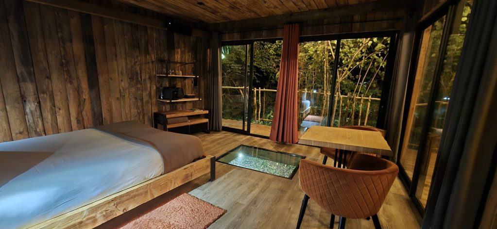 Nos lodges, conçus pour se fondre harmonieusement dans leur environnement naturel, allient élégance, modernité, et authenticité. Chaque lodge a été soigneusement aménagé pour offrir un espace chaleureux et raffiné, avec des matériaux nobles qui évoquent l’esprit de la nature environnante.