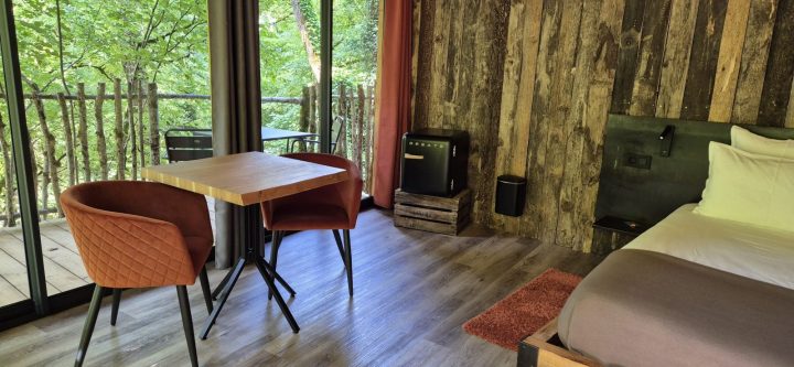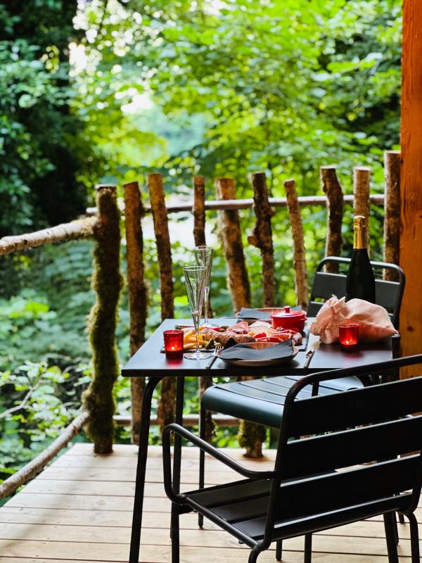 Lodges pour 2 personnes ("Cascade" et "Source") : Logement insolite de 12m² avec balcon privé. Salle de bain privative non attenante