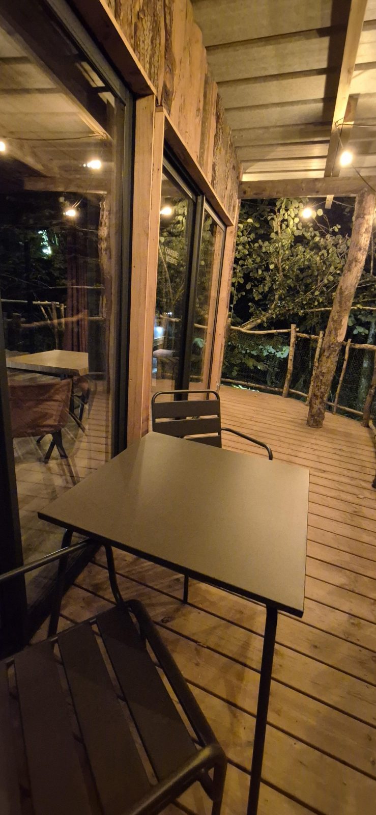 Lodge pour 4 personnes "Ruisseau" (idéalement 2 adultes, 2 enfants) : Logement insolite de 18 m² avec blacon privé. Lits enfants suspendus en filet au-dessus de la nature. Salle de bain privative non attenante