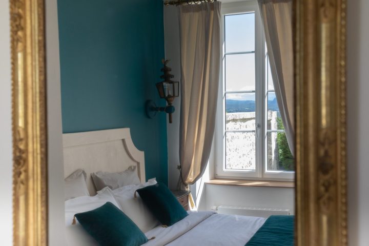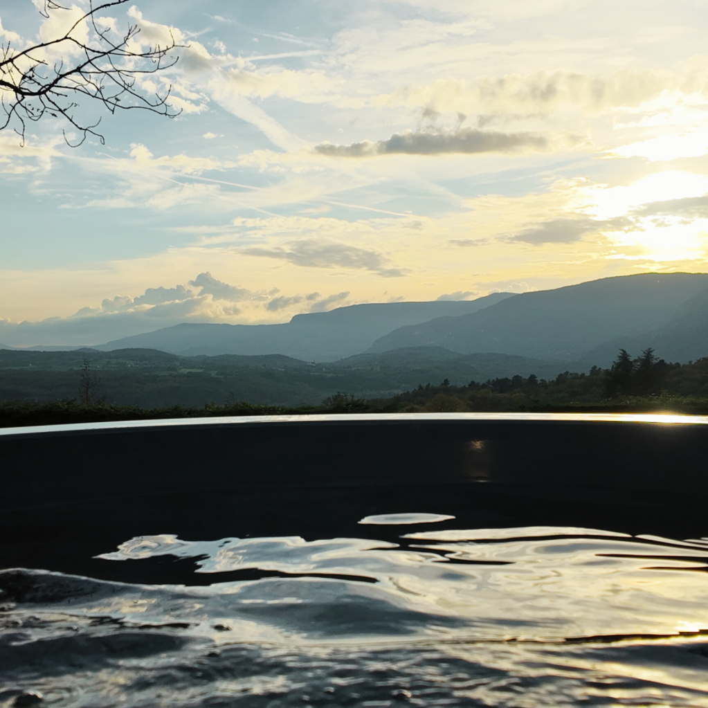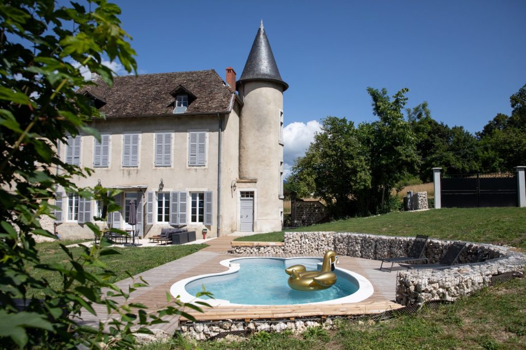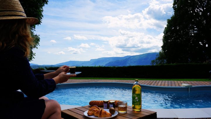 À 1h de Genève et Annecy, le Manoir du Colombier vous ouvre ses portes dans un écrin de verdure, avec piscine privée, **bain nordique** et vue époustouflante sur les montagnes du Grand Colombier.