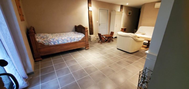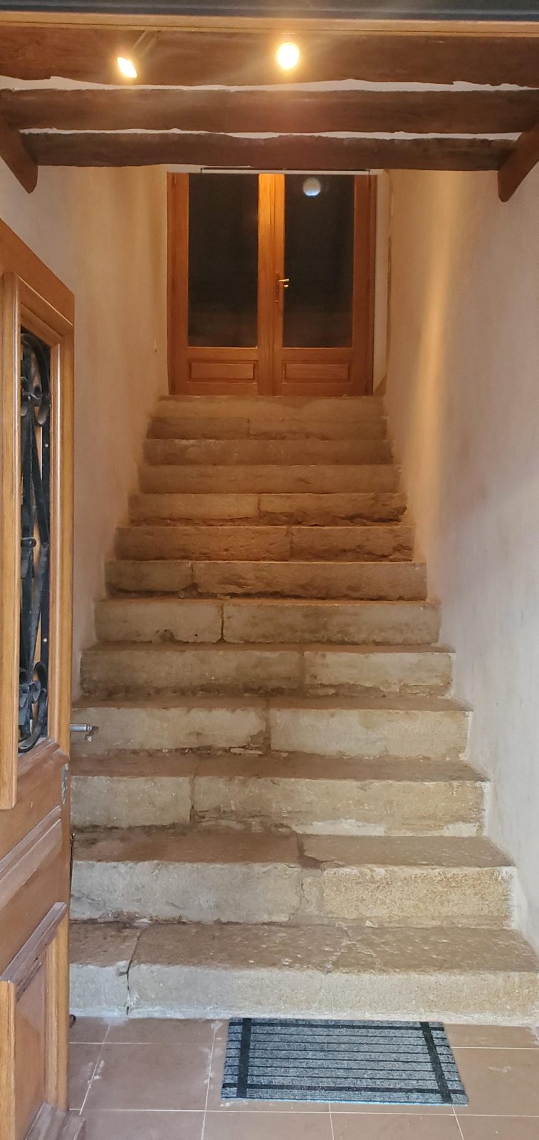 À l’intérieur, cette ancienne maison rénovée dispose d’un escalier monumental en pierre, qui monte au 1er et au 2nd étage vers le « Cabinet de Curiosité » totalement en pierre ! à voir !