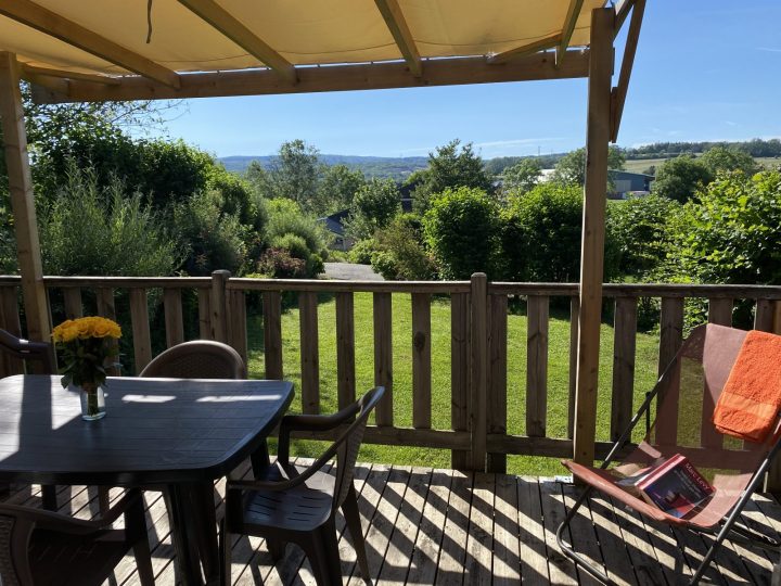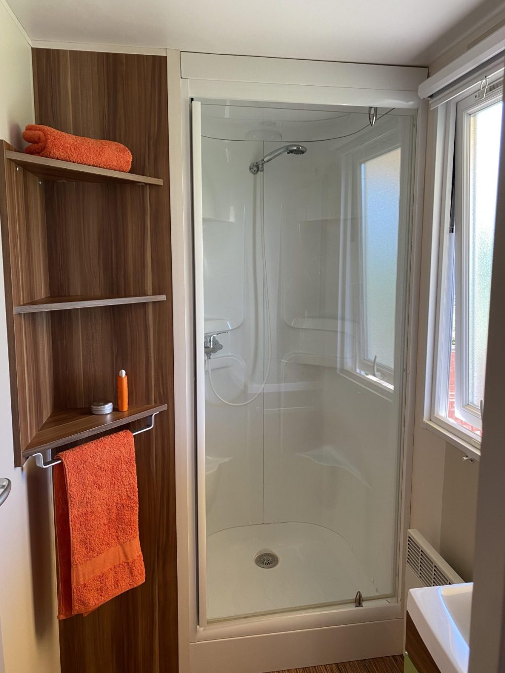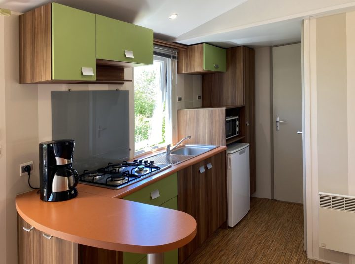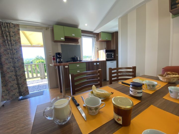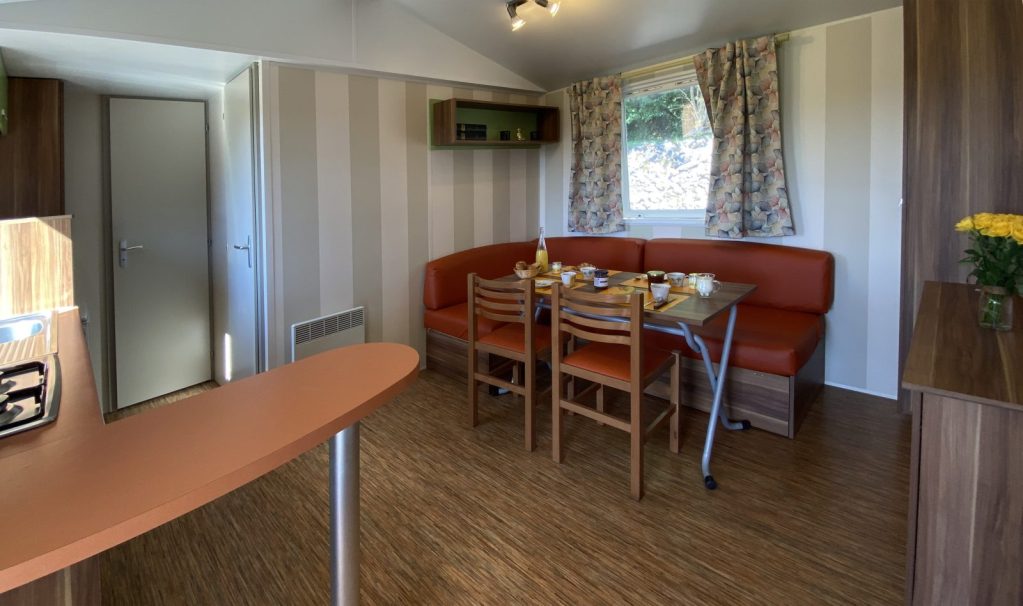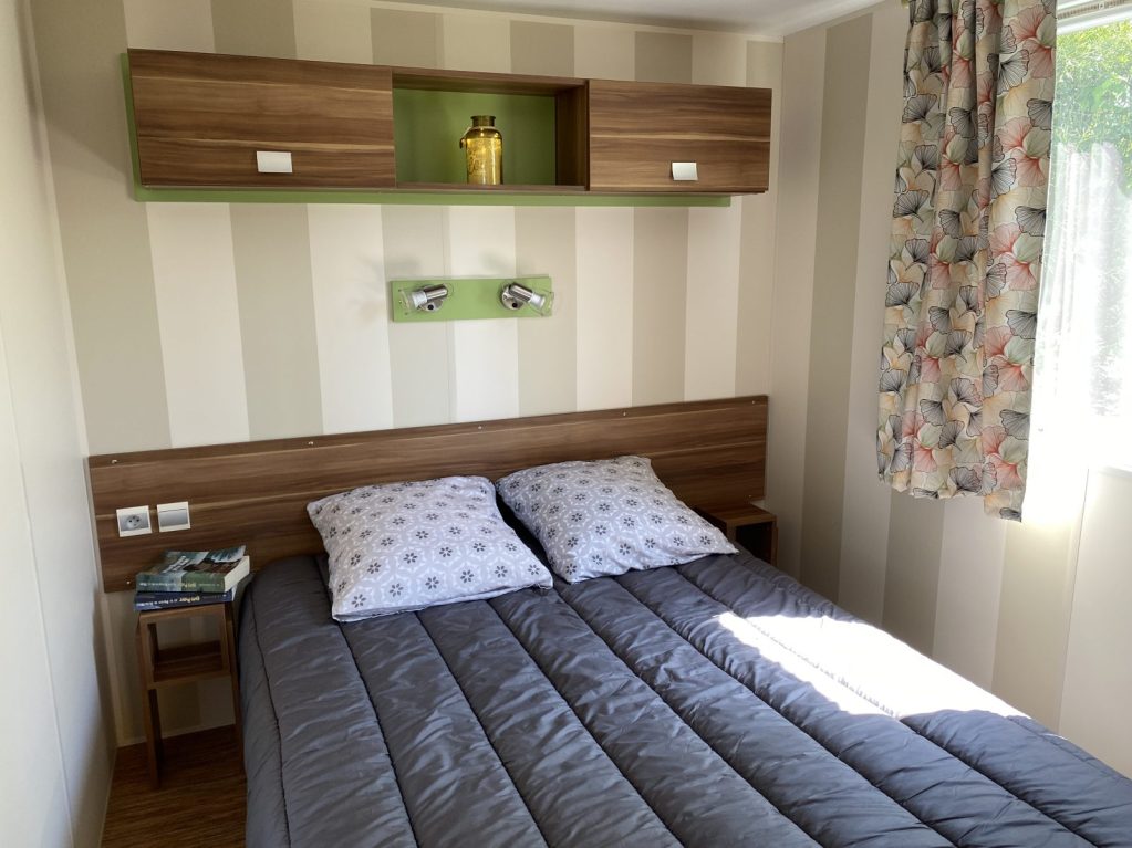 2 Mobiles home extérieur en bois. Modèles IRM Super Mercure, deux chambres, wc indépendants, isolation et chauffage renforcés. Equipement complet, micro-ondes, plaques de cuisson à gaz, réfrigérateur et télévision .Terrasse 15m2 semi-couverte. Wifi accessible.