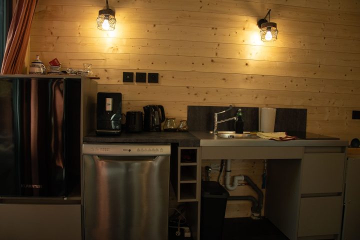 Garez vous tranquillement sur le parking et empruntez la « Passerelle magique » qui vous mènera tout droit sur la terrasse face aux pins. Quels que soient la saison et le temps, laissez vos yeux s’émerveiller devant cette nature environnante grâce à de gigantesques baies vitrées vous assurant un bain de lumière et de détente ; et profitez de ce nano habitat écologique tout confort au grand espace. Ce logis insolite présente la particularité d’avoir été conçu de façon à ce que l’expérience puisse être rendue accessible à tous : enfants, parents, grands-parents, de 0 à 107 ans, et pour tout handicap … Alors Osez l’aventure, dites Oui à un moment de partage ressourçant dans cette maison en bois flammé alsacien !