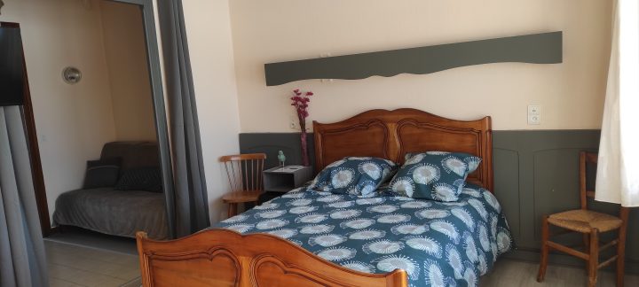 Couchage 1 lit 2 personnes et 1 lit personne, linge de lit et draps de bain fournis. Cuisine équipé d'un four, un four micro-onde, une cafetière, un frigo, une bouilloire. Il y a une télé et le wifi également