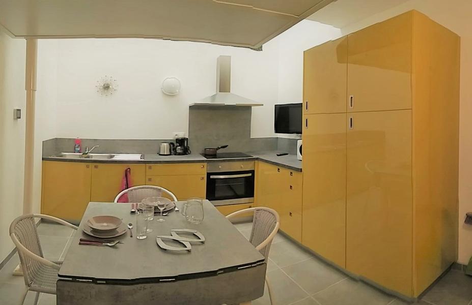 Le studio est équipé d'une TV, d'internet câblé, de vaisselle, de linge de lit et de toilette. Il possède également un local à vélo, et un lave-linge séchant en commun avec les 2 autres studios.