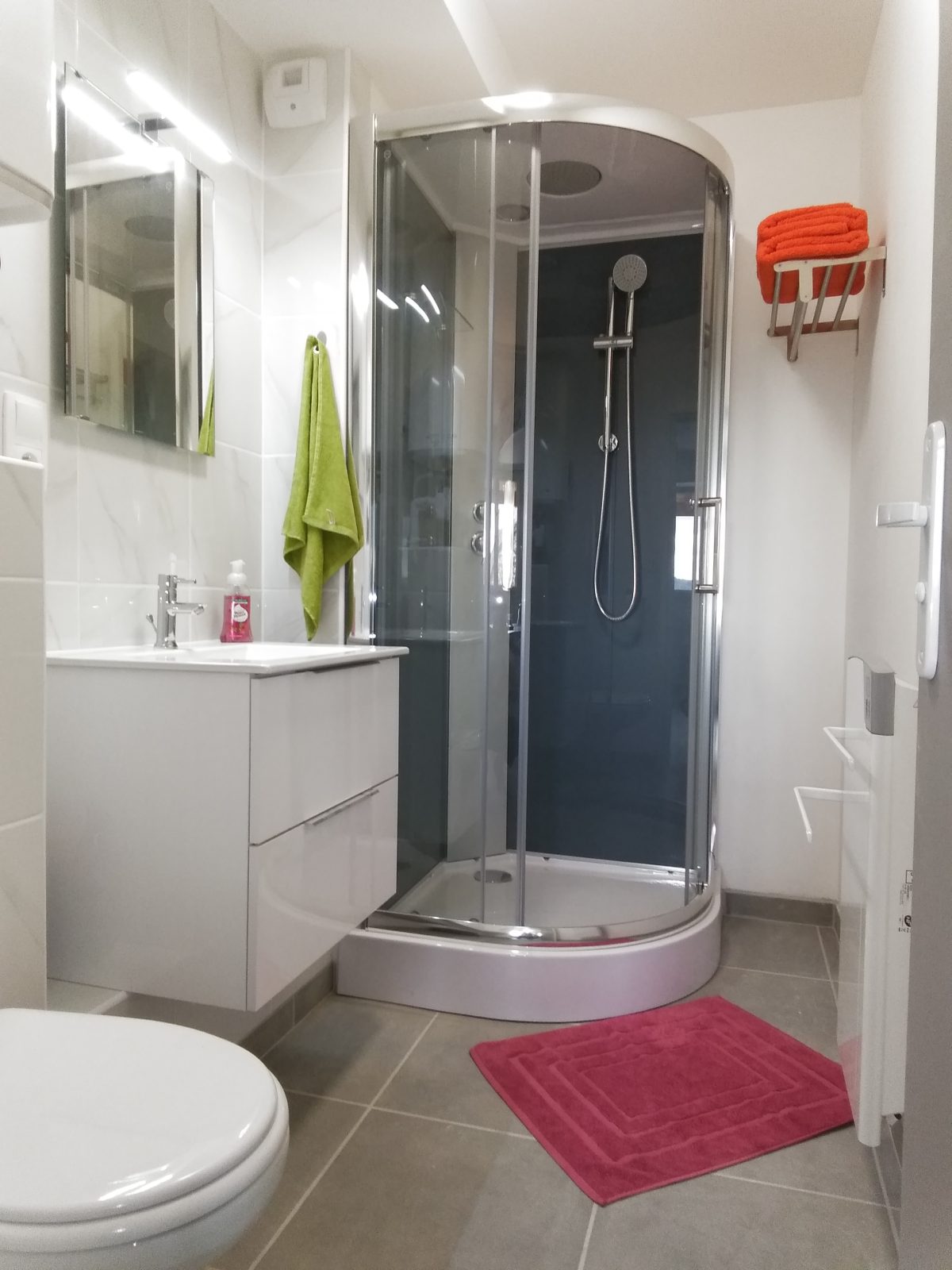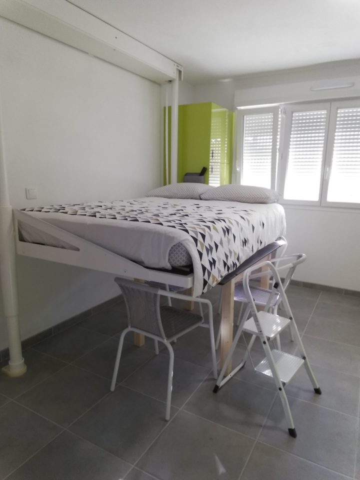 Le studio est composé d'une pièce de 13m² comportant une cuisine équipée et un lit escamotable de 140 x 190, puis d'une salle d'eau (douche, lavabo, wc).