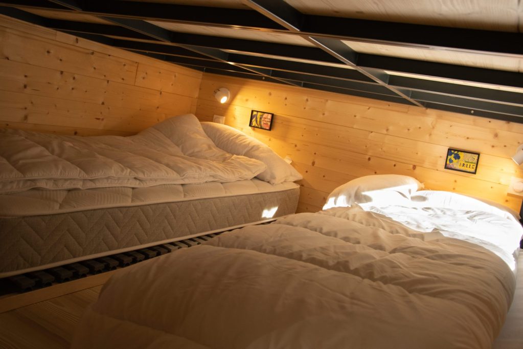 Empruntez le « Petit Chemin des tinys » et tombez sous le charme de cette première tiny conçue autant pour les tribus, que pour les amis ou les amoureux ! Après une journée passée au grand air du Plateau d’Hauteville, au milieu des arbres ou dans le marais, c’est dans la mezzanine basse que les enfants pourront se cacher, jouer ou se raconter des histoires ! Pendant que les uns siroteront un bon digestif sur la mezzanine intermédiaire et les autres observeront le ciel dans la chambre au toit ouvrant donnant sur les étoiles ! Vous l’aurez compris, cette tiny aux multiples facettes saura convenir aux envies de chacun, et vous permettra si le temps le permet, de faire un vœu depuis votre lit, sous les étoiles filantes…Vive la magie !