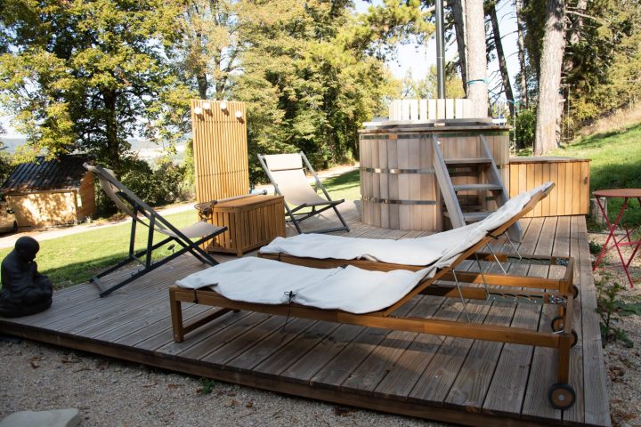 - un spa privatisable, pour la clientèle séjournant sur le site : soit uniquement sur l'aspect extérieur (bain nordique traditionnel artisanal de qualité avec sa terrasse) soit avec en plus un espace intérieur zen tout équipé, comprenant notamment un sauna.