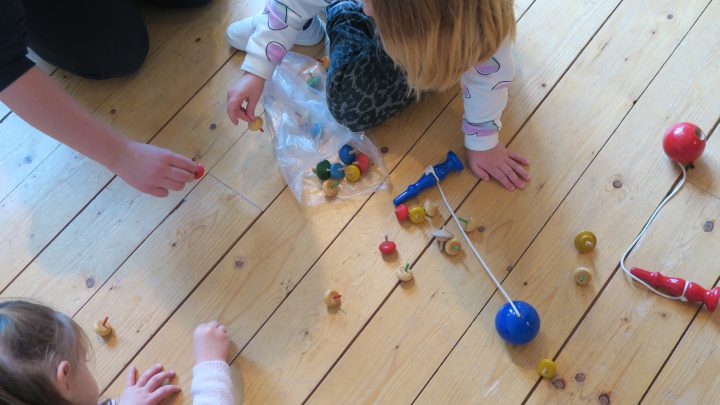 Manipulation de boules de bois d'essences différentes dans l'exposition d’œuvres d'art contemporain en bois tourné