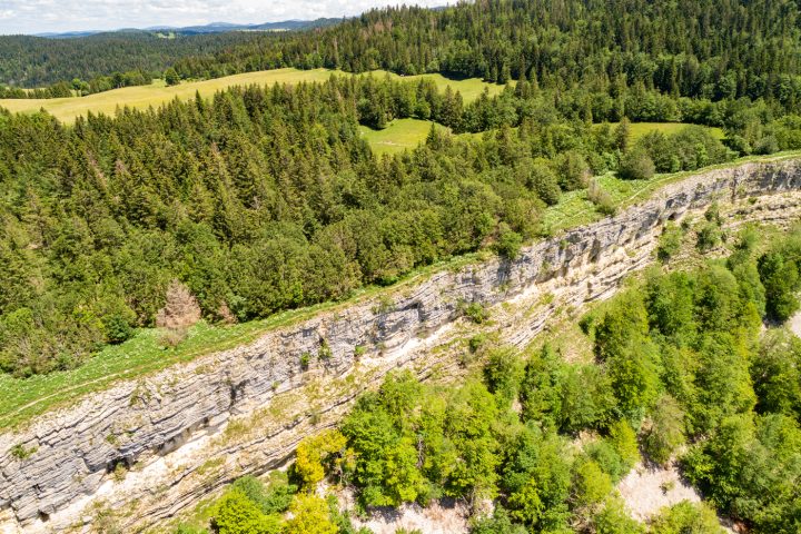 Le cirque d'Orvaz est un vaste hémicycle qu'éventre l'enticlinal chevauchant les Bouchoux.
