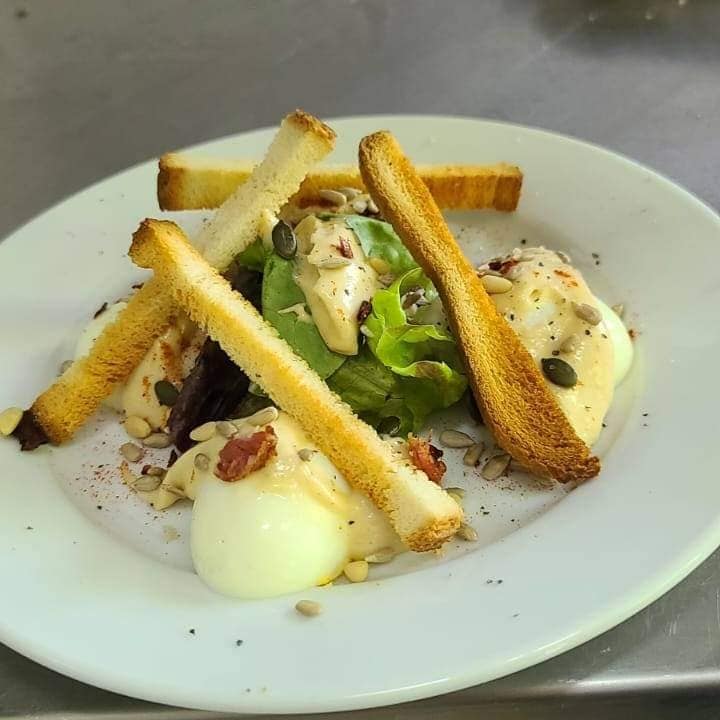 Le chef, Joris, propose une cuisine maison, généreuse et authentique, valorisant les produits du terroir, notamment les produits Saveurs de l’Ain.