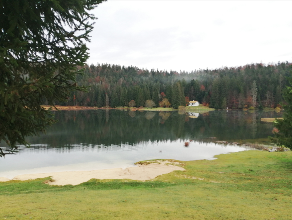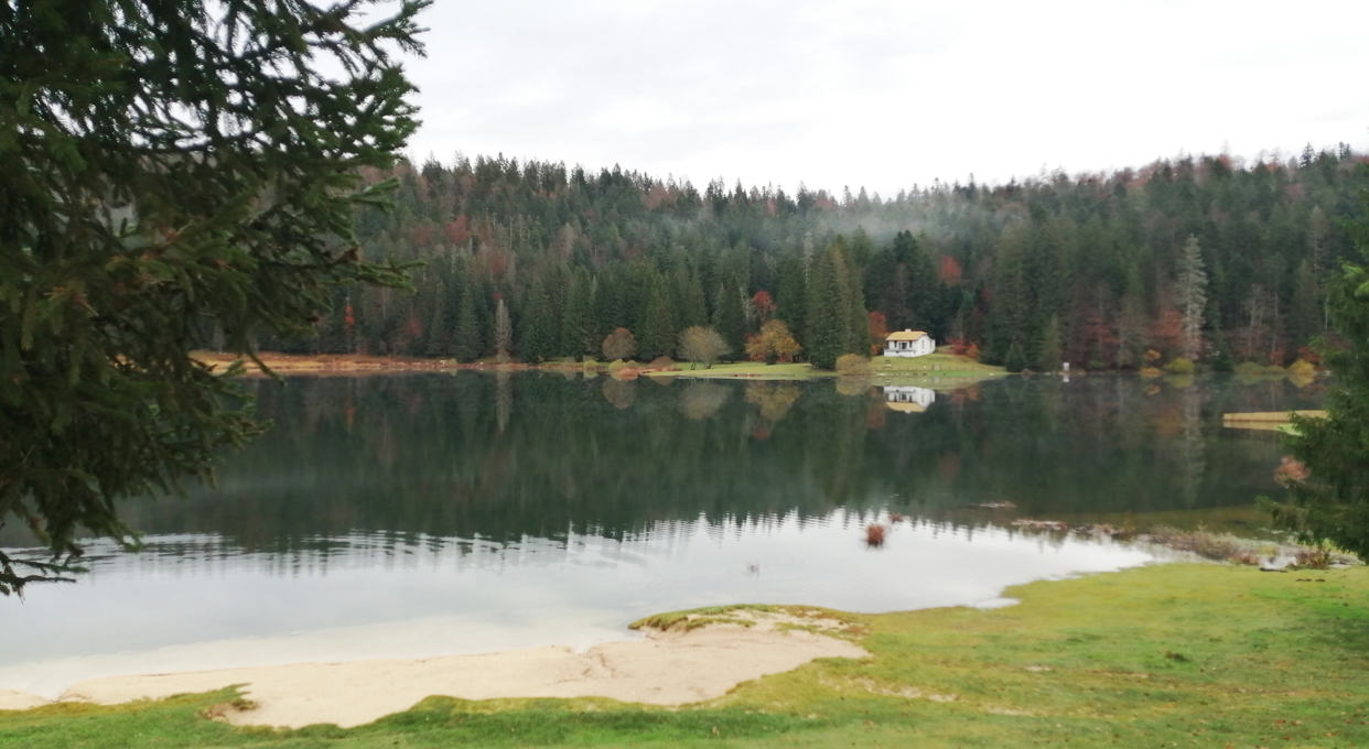 Se retrouver tous les deux en ce lieu romantique à souhait et passer la nuit à l’Auberge du lac Genin, dans un calme olympien, nous a fait un bien fou. Petit tour du lac pour s’imprégner du lieu encore désert à cette heure : notre chien Peaky était tout aussi heureux de gambader et jouer avec nous. De retour à l’Auberge, nous n’avons pas résisté à l’envie de s’installer en terrasse pour déguster notre petit- déjeuner, face au lac Genin, en assistant au spectacle des reflets dans l’eau et de la brume qui se lève progressivement pour laisser place à une belle journée ensoleillée. Quel privilège !