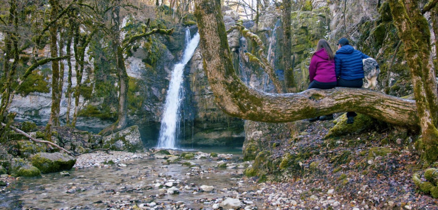 Le plateau d’Hauteville regorge de petits trésors naturels qui se dévoilent au détour d’un sentier. La cascade de Mélogne n’est pas la plus spectaculaire mais le site vaut le détour. A l’ombre à cette heure de la journée, il y règne une atmosphère mystérieuse avec ces arbres couverts de mousse, et il faut l’avouer, un avant-goût de fraîcheur hivernale. Ce site bucolique méritait bien une petite pause contemplation.