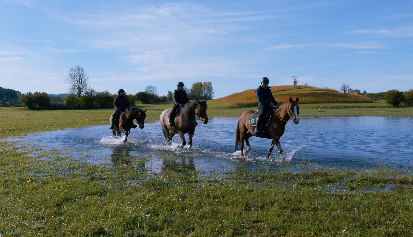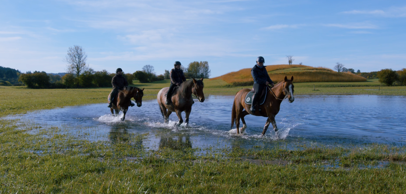 Où que nous allions, c’est plus fort que nous, l’envie de monter est irrésistible. Maurine nous a accueillis dans son centre équestre La Maurinière à Brénod. La complicité entre l’homme et le cheval est immédiate et nous voilà partis pour une belle balade accompagnée le long de petits chemins en sous-bois ou à travers les prairies aux couleurs automnales.