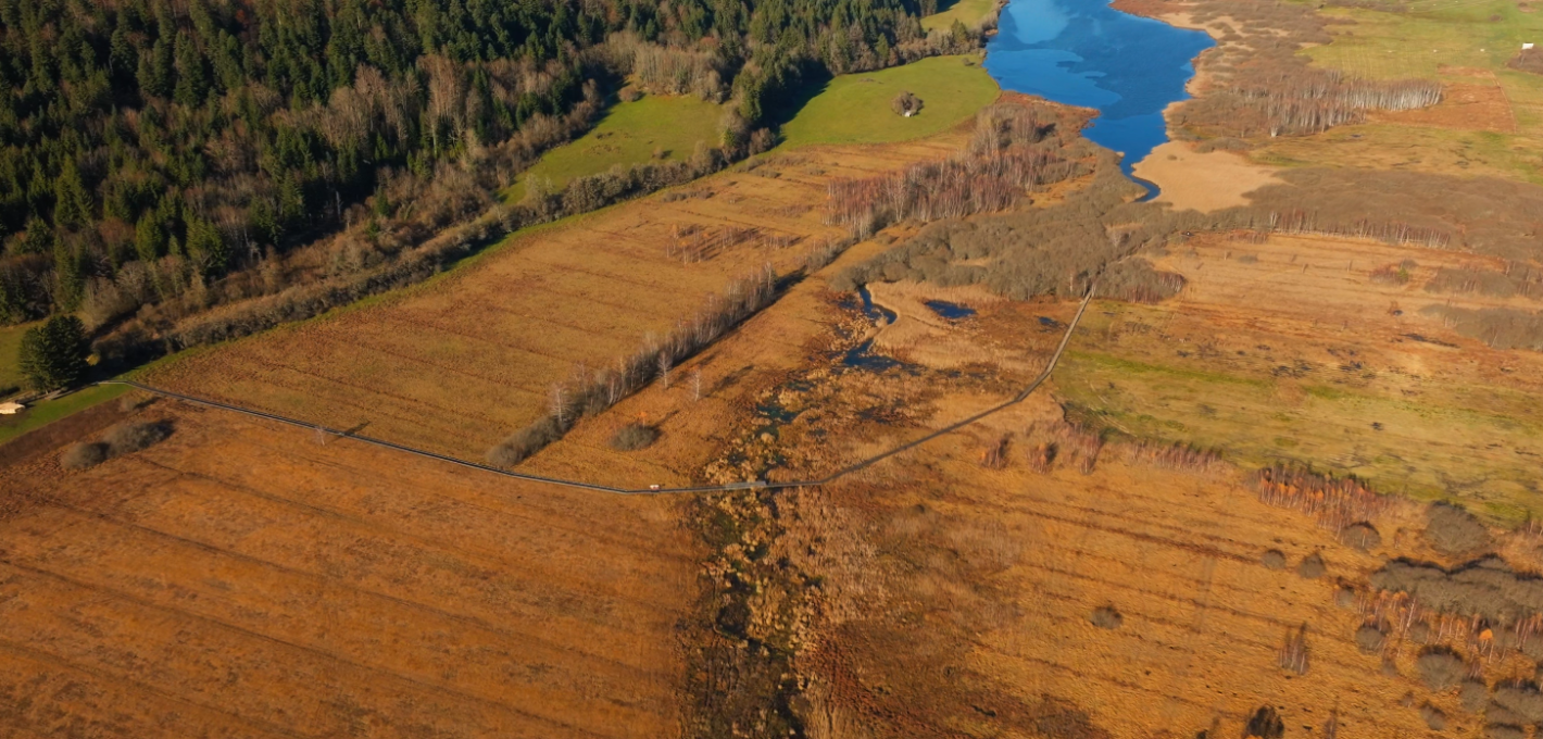 En poursuivant la promenade, nous arrivons au marais de Vaux, un espace naturel à la biodiversité très riche. Le sentier sur pilotis qui le traverse nous a permis de pénétrer en son cœur et d’éveiller nos sens : le chant des oiseaux, les odeurs d’humidité et de verdure, les nuances de vert, orange, rouille… et le bleu profond de l’étang des Lésines.