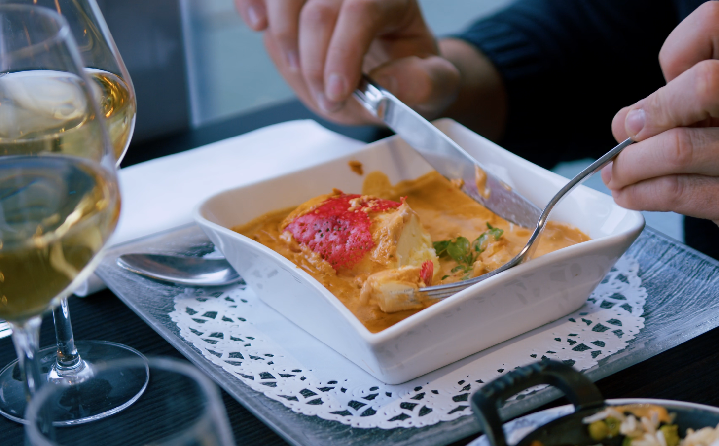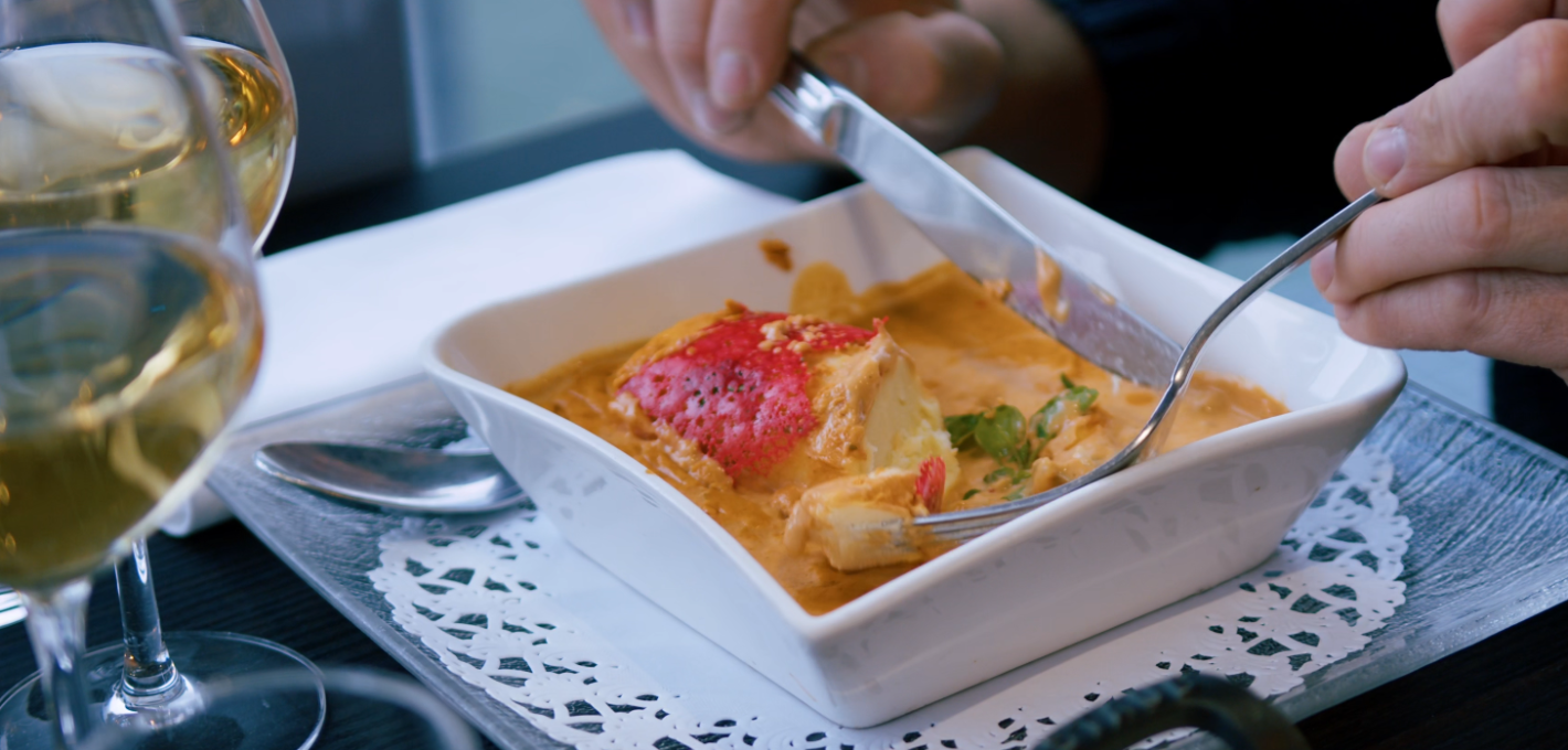Installés dans la véranda du restaurant Belle Rive, au bord du lac de Nantua, on se croirait sur un bateau. Notre choix s’est porté sur un plat très local et réconfortant : la quenelle de brochet sauce Nantua. Et c’est sans aucun regret, les délicates saveurs du brochet et des écrevisses étaient bien au rendez-vous.