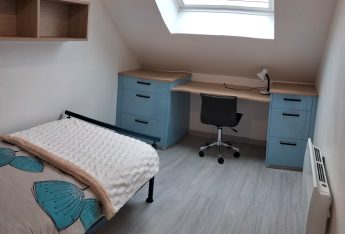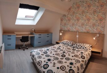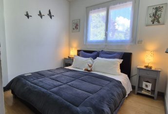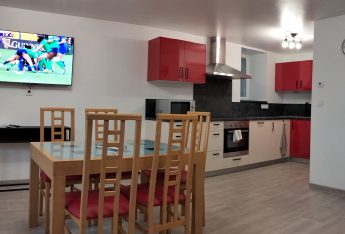 Gîte meublé avec garage, au 1er étage, la pièce à vivre avec cuisine équipée et un WC. Au