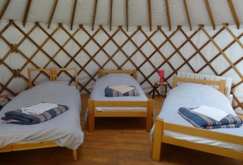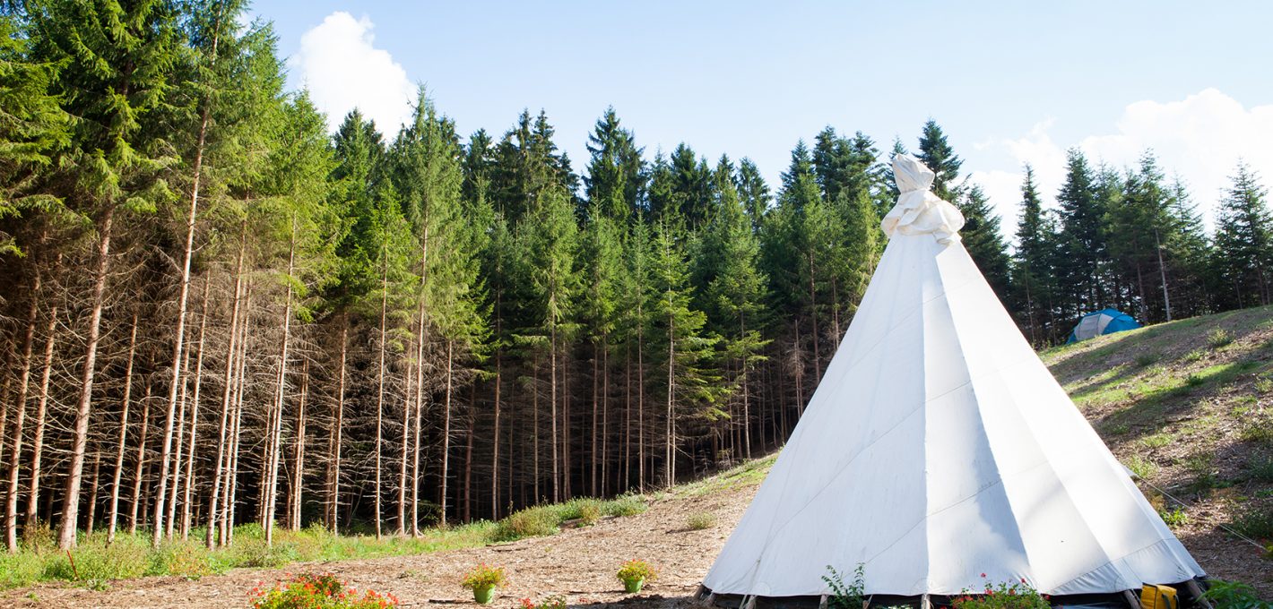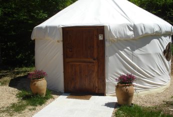 3 tipis bois chauffés et 4 yourtes à l'orée de la forêt peuvent accueillir jusqu'à 29 pers.