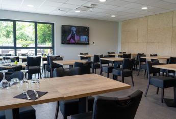 "Le Lodge" est une salle de restaurant pouvant accueillir les familles avec enfants.