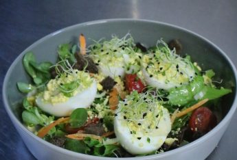 Avec les couleurs des primeurs du marché et les produits du terroir, Muriel dessine au fil des